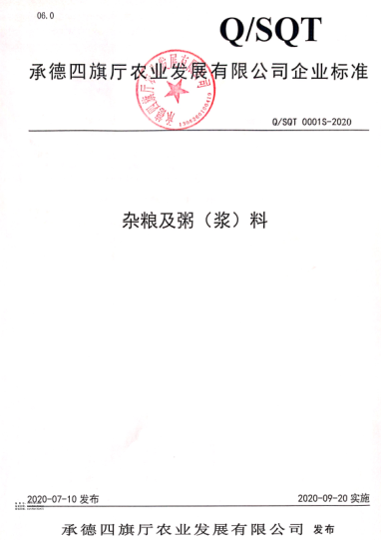 承德四旗廳農業發展有限公司本次備案的企業標準《雜糧及粥(漿)料》,經過我公司技術人員池建敏 老師的編寫、備案,所提交的材料符合河北省衛健委的備案要求,于2020年9月成功備案并在河北省食品安全標準管理系統公示。