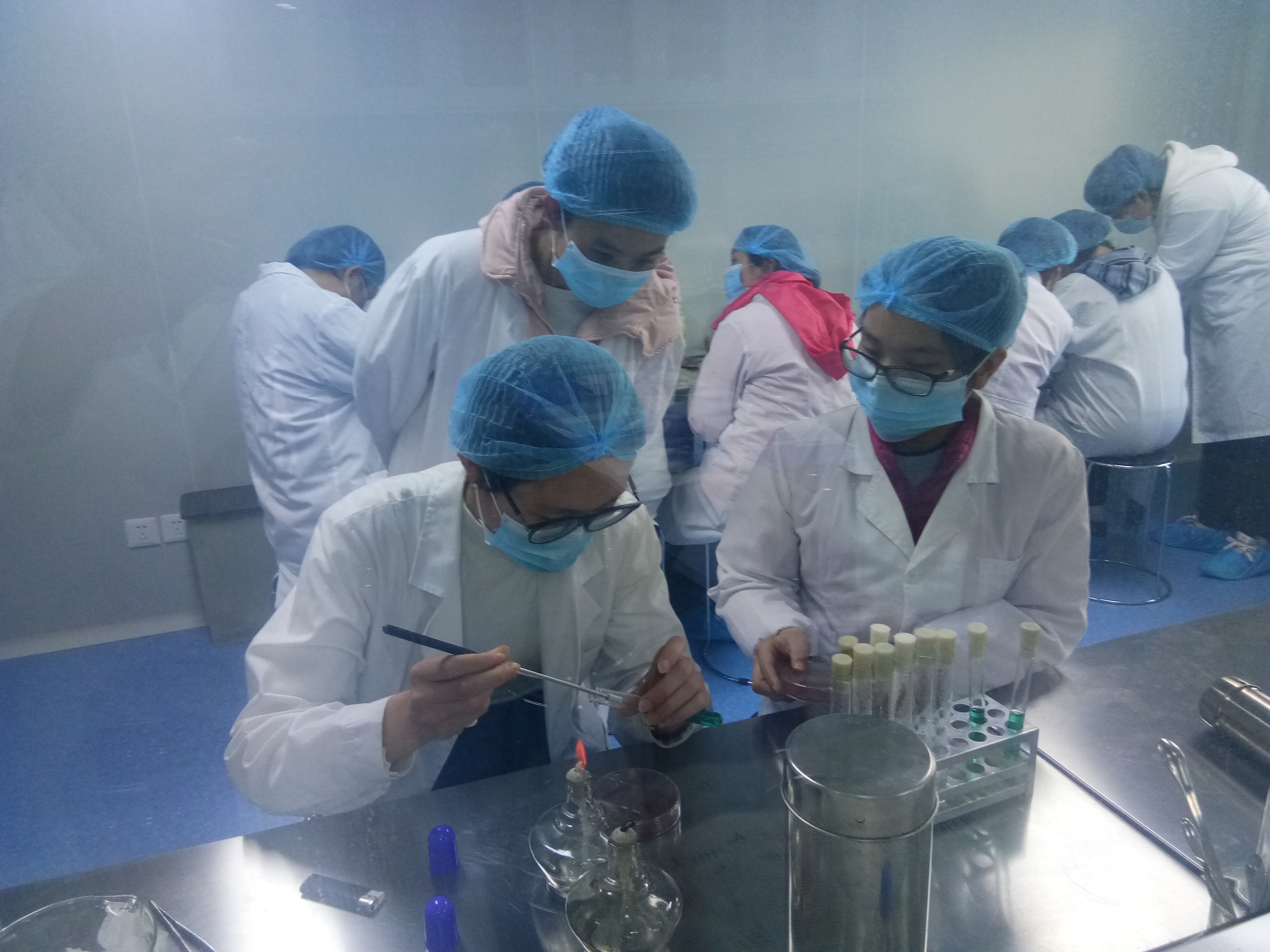 2.實際操作培訓。教師演示指導,學員采用真實樣品(部分樣品加入標準菌種)進行實際檢測操作,按需求分組現場操作培訓,指導老師現場糾正錯誤、點評分析。基礎操作:培養基配制、滅菌、接種、無菌操作,培養基接種,平板劃線分離、讀數、檢驗記錄和檢驗報告表格制作及正確填寫等內容。